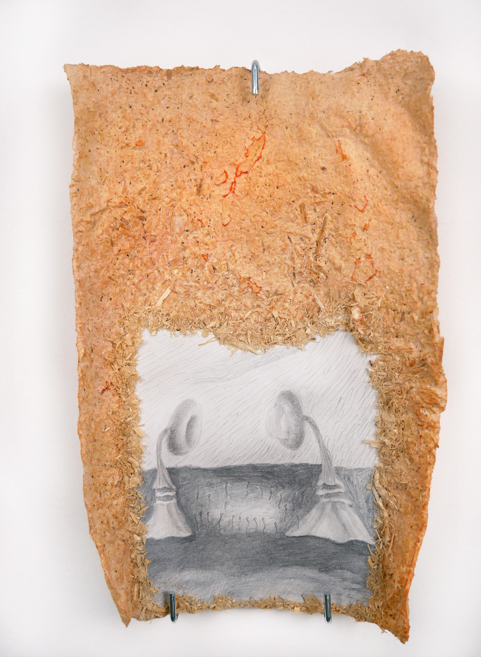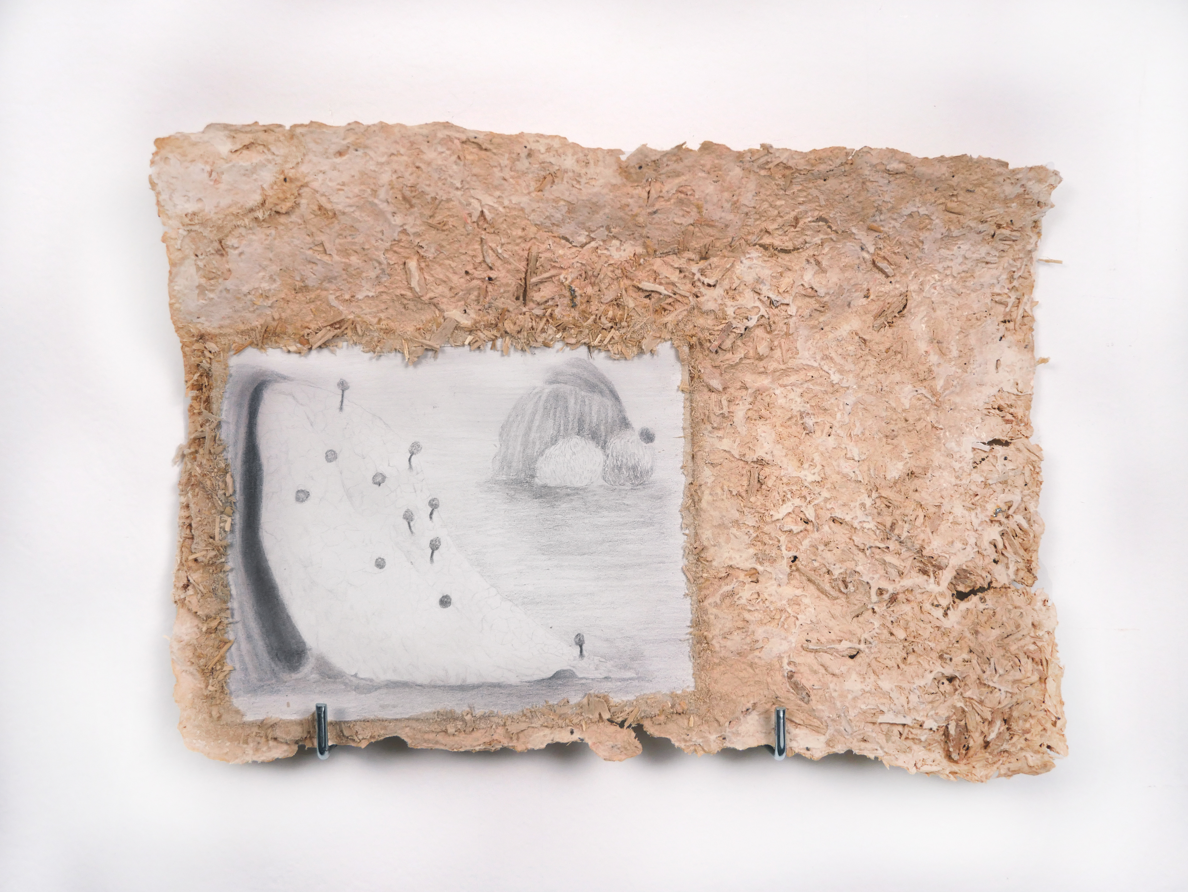 Material: Graphite on paper, mycelium paper